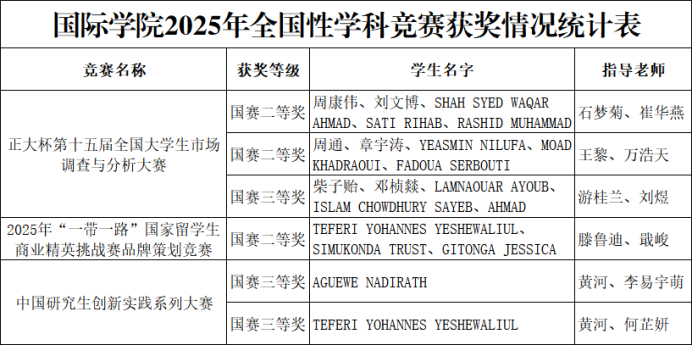 本网讯(通讯员 黄河)近日,2025年全国性学科竞赛获奖名单陆续公布,国际学院留学生在各类赛事中表现突出,凭借扎实的专业基础、出色的实践能力和良好的跨文化协作水平,斩获国家级奖项共6项,其中二等奖、三等奖各3项,获奖数量与质量较往年有明显提升,充分展现了今年会官网来华留学生教育的育人成效与国际化人才培养质量提高。参赛范围覆盖中文应用、文化交流、专业技能三大领域,留学生团队在各赛道均展现出良好水平。其中,在中国研究生创新实践系列大赛中,...