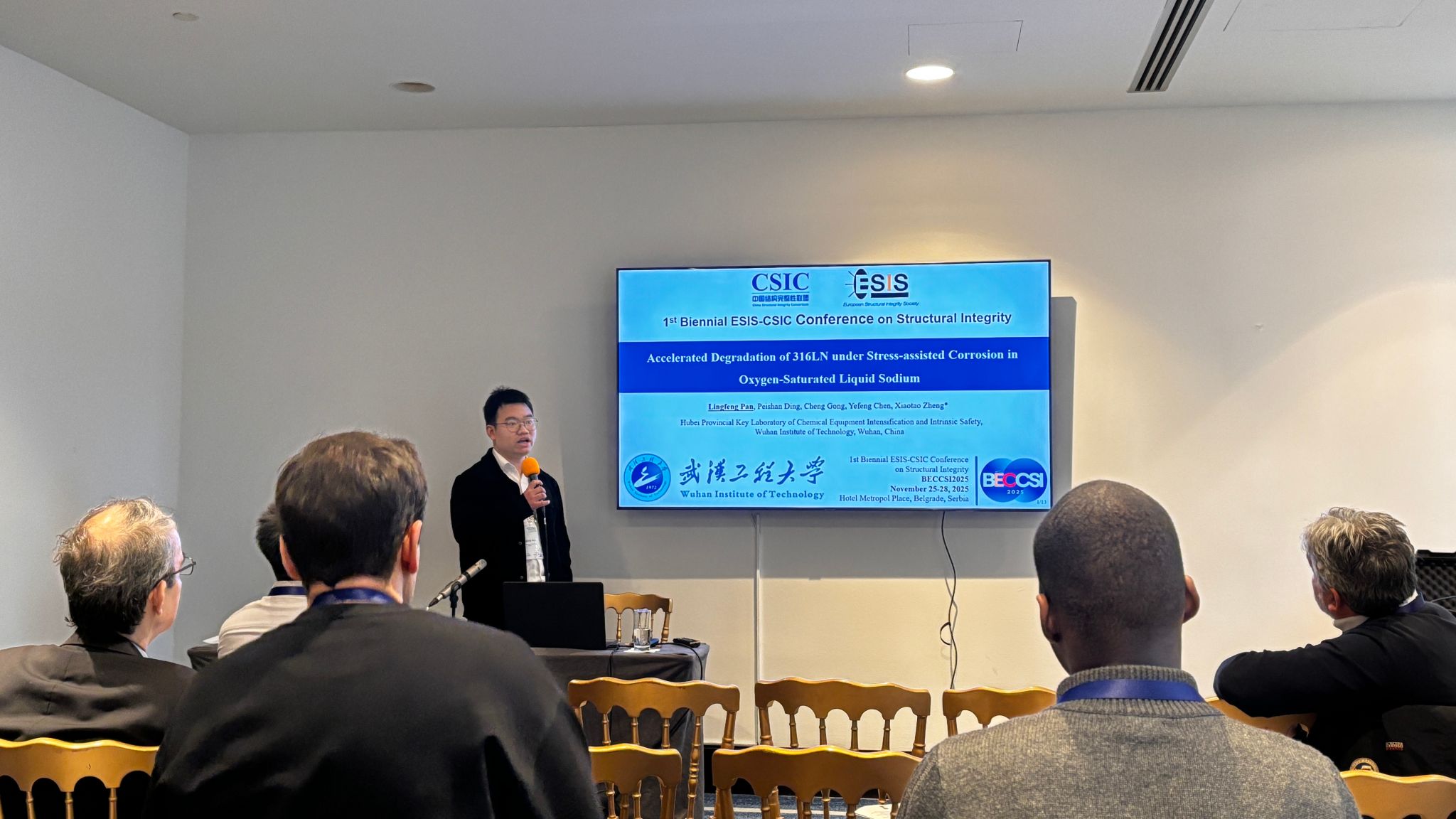 本网讯(通讯员 夏文凤)11月24日-28日,中欧首届ESIS-CSIC结构完整性双边年度会议在塞尔维亚贝尔格莱德成功举办。300余名来自中国、欧洲、英国、日本等全球高校、科研机构及工业界专家学者参加了本次会议,围绕极端条件下的疲劳与断裂、多尺度材料分析、结构健康监测、人工智能与大数据在工程领域的应用等前沿方向展开深度研讨,共话结构完整性学科发展。机电工程学院钱正芳教授、陈野风博士以及博士生夏文凤、潘凌峰应邀参加了本次会议。