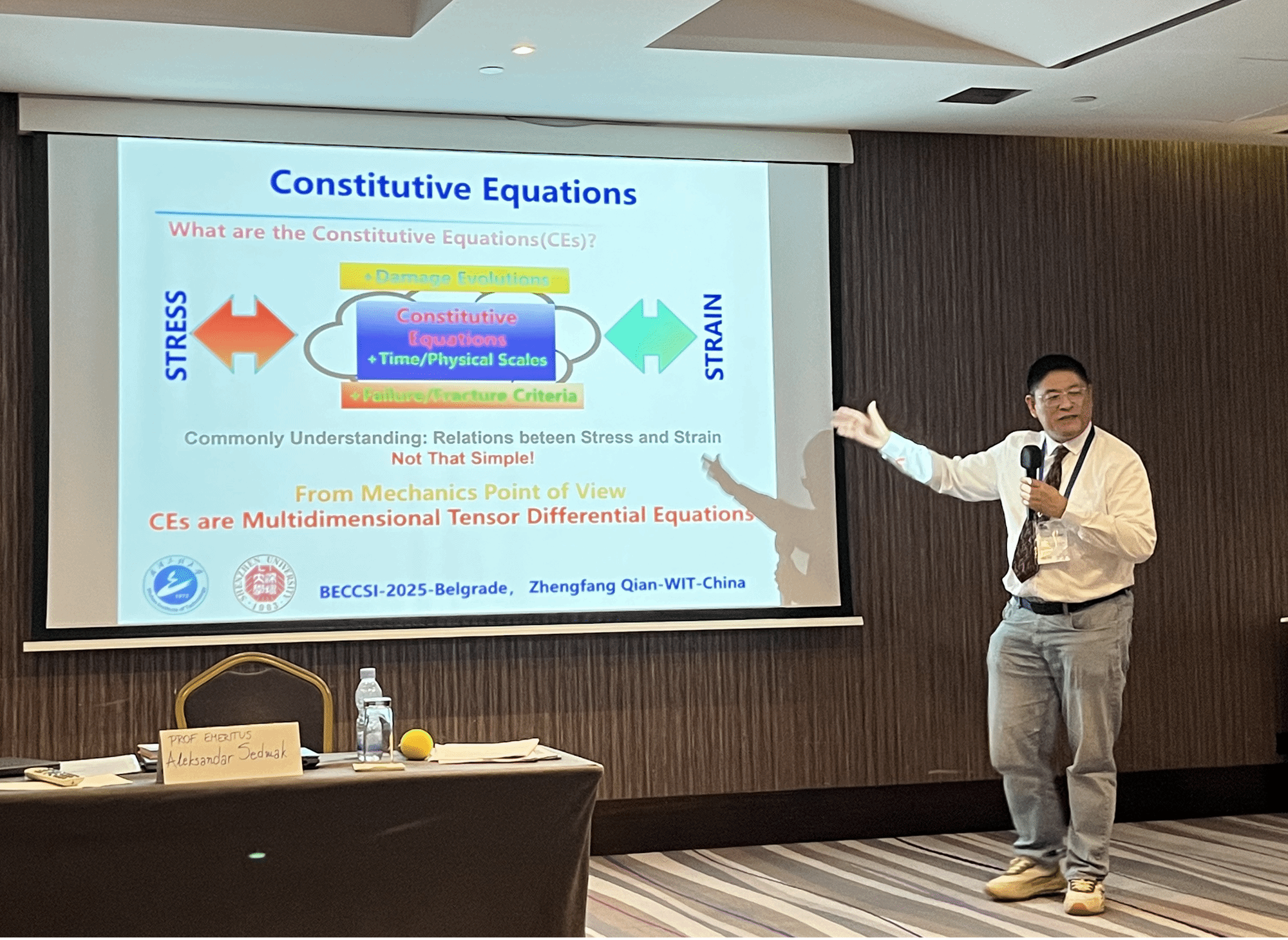 钱正芳教授应邀作大会特别报告,以“Viscoplasticity with Damage Evolution for Reliability Engineering”为题,系统介绍了粘塑性本构模型的历史发展及国内相关研究进展,并以电子元件引脚和高温螺栓法兰的失效为例,验证了其开发的粘塑性本构模型适用性,报告获得了欧洲结构完整性学会主席Prof. dr. Aleksandar Sedmak及与会专家的高度肯定。