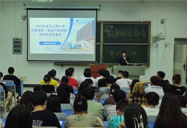 二是密集开展校外线下宣讲会。充分发挥学院各方主体的作用,着力打造“学院-研究生教育中心-研究生导师”全方位、多维度、立体化的宣传格局,组建一支法商学院(知识产权学院)研究生招生宣讲团。宣讲团于5月-6月赴湖北省、河南省、湖南省、山东省等生源集中地进行招生宣传,共开展15场宣讲会,授牌优质生源基地2个。学院宣讲团成员就报考流程、专业特色、近几年报名人数和录取比例等考生关心的问题作了详细解读。