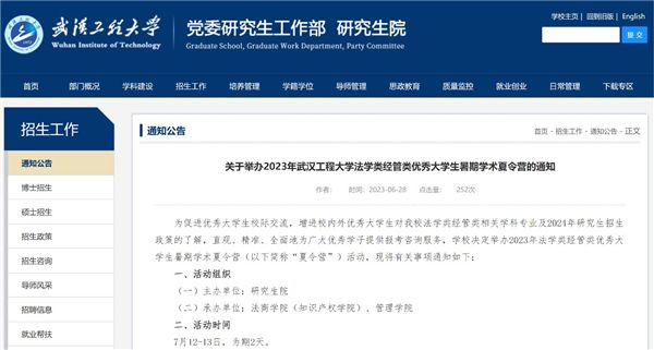 三是试点开展暑期学术夏令营。学院联合管理学院共同承办2023年法学类经管类优秀大学生暑期学术夏令营,促进优秀大学生校际交流,增进校内外优秀大学生对今年会官网法学类经管类相关学科专业及2024年研究生招生政策的了解,直观、精准、全面地为广大优秀学子提供报考咨询服务。