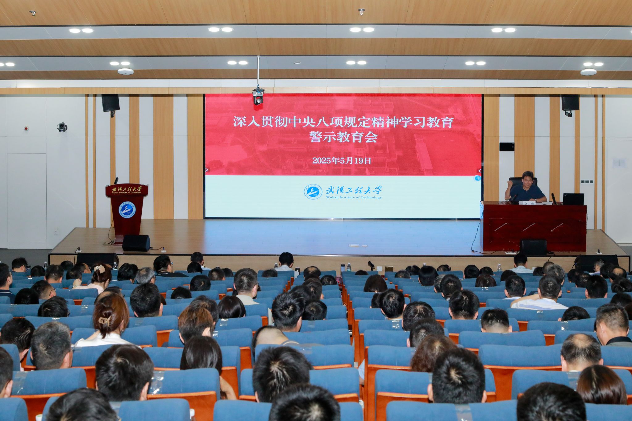 本网讯(通讯员:周雯琪 谭明武)5月19日下午,学校在教育教学综合楼102报告厅召开深入贯彻中央八项规定精神学习教育警示教育会,会议由校党委书记汪伟主持,全体校领导、中层干部、新提拔干部、年轻干部、关键岗位干部、组织员参加会议。