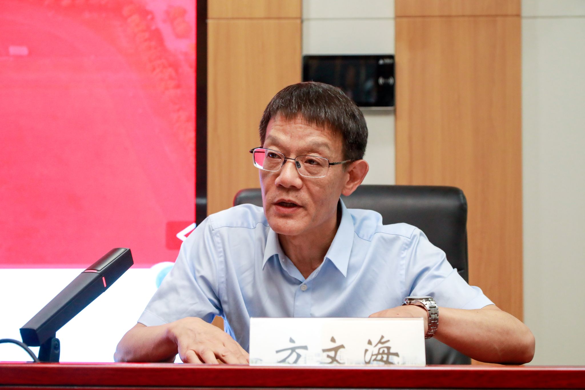 参会人员共同观看了警示教育片《无处遁形》。(审稿人:王金领)