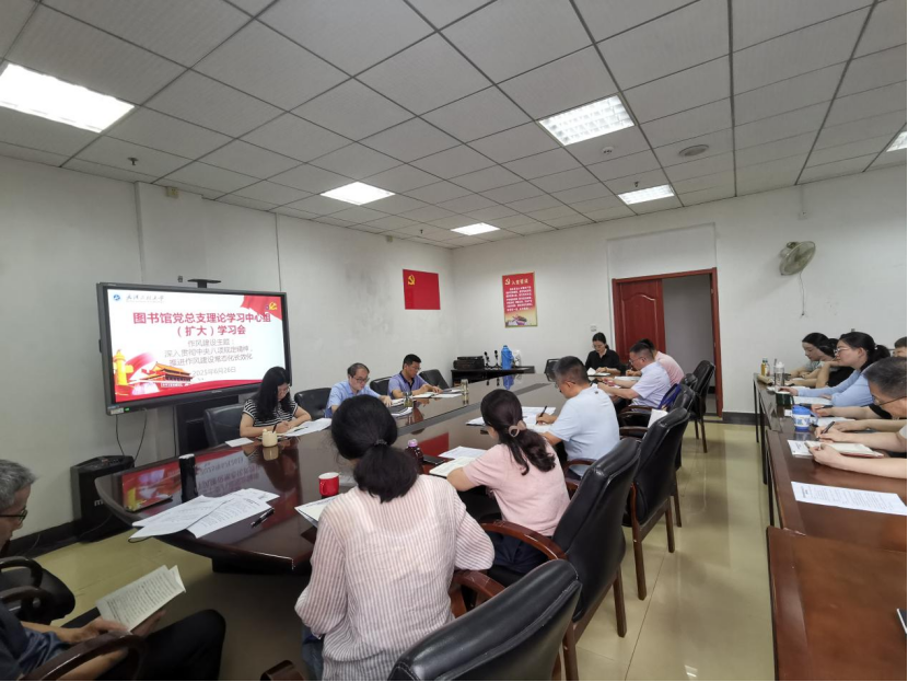 本网讯(通讯员 何洁)6月26日上午,图书馆党总支理论学习中心组在流芳校区图书馆五楼会议室召开(扩大)学习会,学习会以 “深入贯彻中央八项规定精神,推进作风建设常态化长效化” 为主题展开学习。会议由图书馆党总支书记曹迅飞主持。